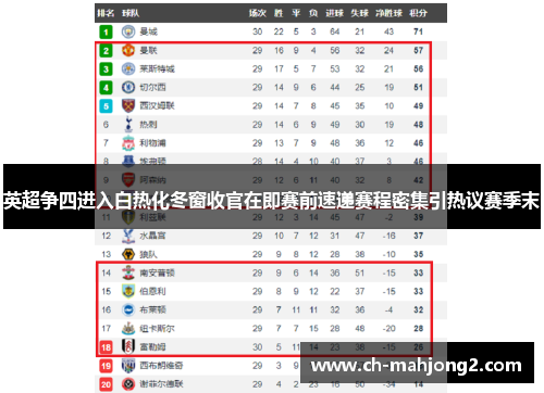 英超争四进入白热化冬窗收官在即赛前速递赛程密集引热议赛季末